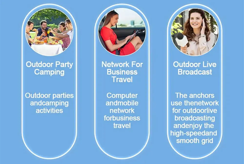 lmagine 4G High-Speed Network:Exclusive 4G high-speed network, the network speed is equivalent to 100M optical fiber to easily play large-scalegames Blu-ray moviesFully Compatible With Multi-Person Sharing:Support multiple devices to use at the same timePlay Games Without Lag:High bandwidth, high frequency transmission low latency, low power consumptionMore Scope Of Application Enjoy Wifi Anytime, Anywhere:Party, travel, business trip, outdoor live broadcast, game