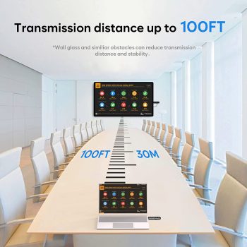 • [Low delay] The transmission distance of wireless HDMI is up to 98ft/30M, with only 129ms(almost real-time) delay and no need wire connection, powerful long-distance signal, can penetrate the wall, floor and ceiling transmission. *NOTE: Signal distance is reduced when working through walls. The wireless HDMI transmitter and receiver built-in 5GHz transmission standard technology makes transmission efficiency faster and more stable.